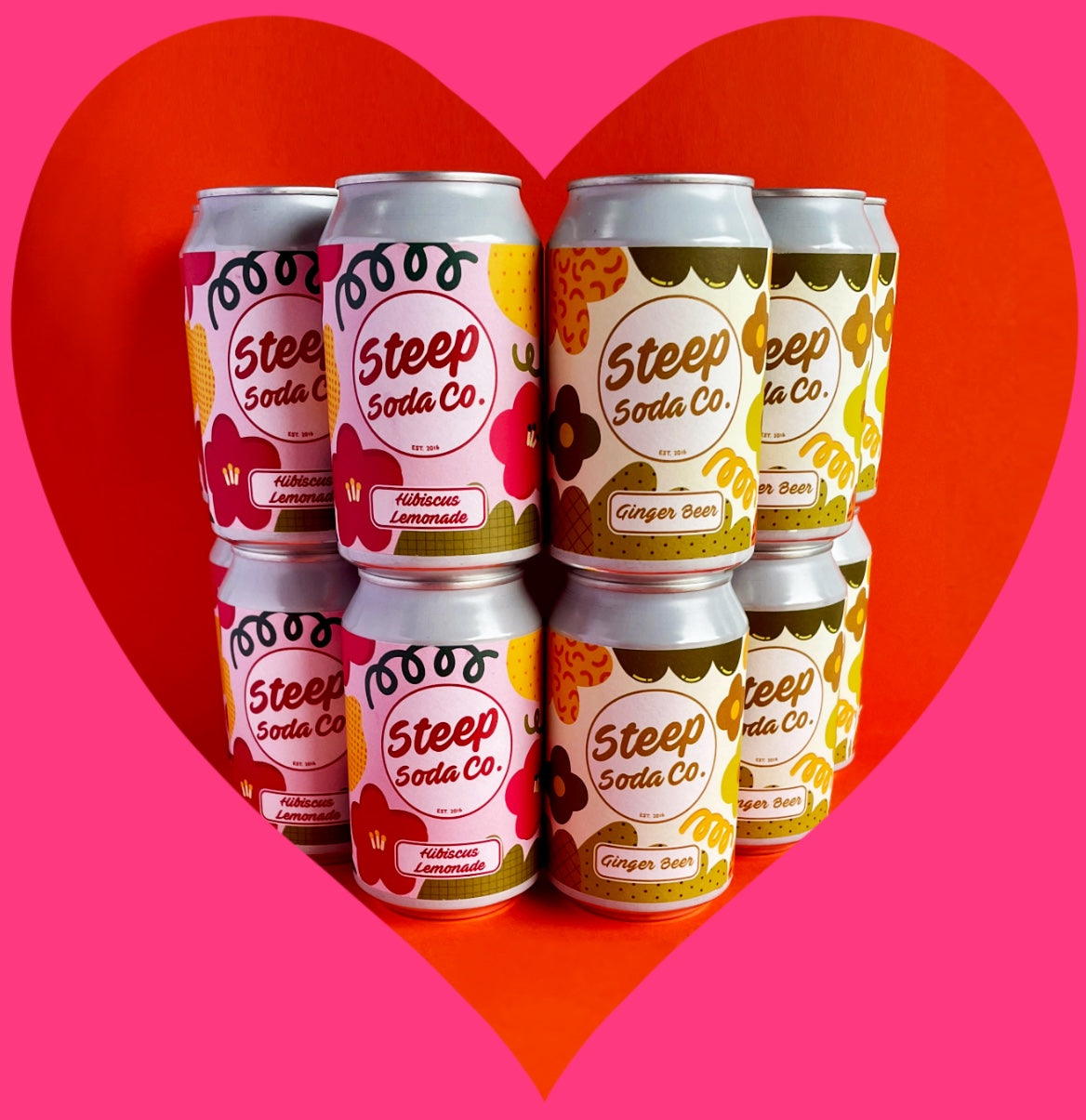 • 6 cans of refreshing Steep Soda Hibiscus Lemonade